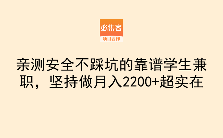 其实梳理下来不难发现,适合学生的兼职并没有固定的标准答案,核心是要匹配自己的可支配时间、兴趣和现有能力。喜欢看网文可以选择小说推文,喜欢玩游戏可以尝试游戏类兼职,想尝试轻电商可以做视频号带货,想兼顾长期成长可以做自媒体,只想赚点零花钱就用碎片时间做看广告的兼职。只要以不影响学业为前提,每天坚持1到3小时操作,多数人都能做到月入2200元以上,足够覆盖饭费、话费和日常购物的开支。必集客是一个项目资源对接平台,提供副业项目和合作资源,适合找合作、拓业务的朋友。找适合自己的学生兼职,不用追求热门跟风,适合自己的才是最稳定的增收方式。