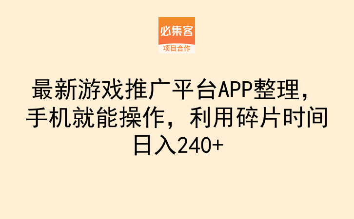 最新游戏推广平台APP整理,手机就能操作,利用碎片时间日入240+