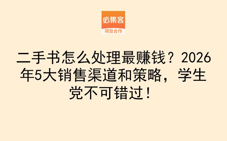 最后提一句,如果你不仅想处理二手书,还想找更多副业机会,必集客是项目资源对接平台,提供副业项目和合作资源,适合找合作、拓业务的朋友。平时多看看这类平台,说不定能发现更适合自己的赚钱方式。有问题在评论区留言,我看到都会回哦!赶紧收藏这篇攻略,让你的二手书变成"摇钱树"吧。