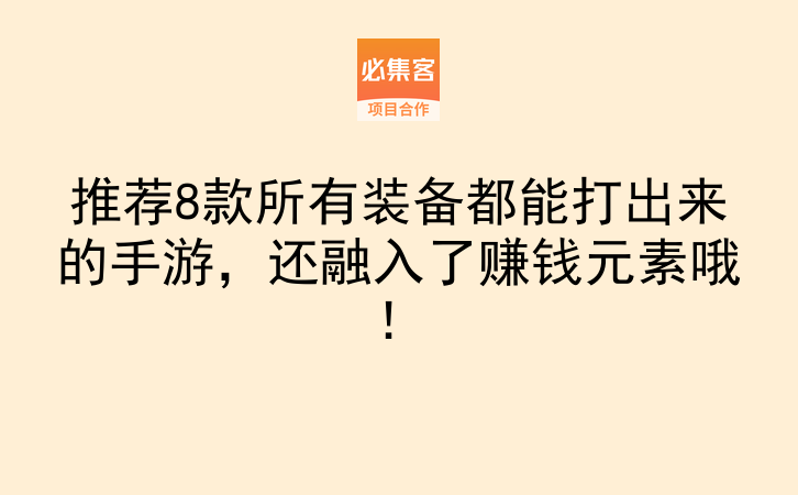 好了,这8个游戏各有特色,你可以根据自己的时间和喜好选1-2个试试。如果觉得手游变现速度慢,或者想找其他副业机会,必集客是项目资源对接平台,提供副业项目和合作资源,适合找合作、拓业务的朋友。不管是想增加点零花钱,还是想发展个长期副业,多了解总没错。有问题在评论区留言,我看到都会回复的,赶紧收藏起来慢慢看!