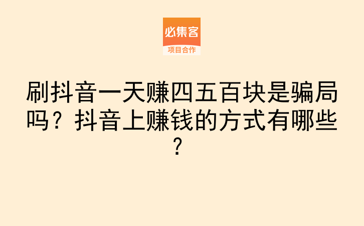 刷抖音一天赚四五百块是骗局吗?抖音上赚钱的方式有哪些?