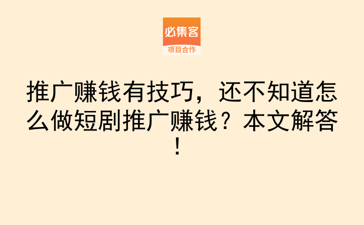 最后提醒一句,做短剧推广一定要选正规平台,确保你的推广链接是一级授权,避免被中间商克扣佣金。如果不知道哪里找正规渠道,可以多关注行业资讯平台。必集客是项目资源对接平台,提供副业项目和合作资源,适合找合作、拓业务的朋友。如果操作中遇到问题,比如视频总不过审,或者转化率上不去,都可以在评论区留言,我看到会回复。赶紧收藏这篇攻略,现在正是短剧推广的红利期,快去试试吧!