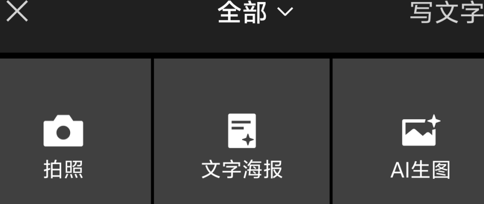 先在手机上下载官方的公众号助手APP,打开后点击贴图,就能看到3种创作方式,分别是拍照、文字海报和AI生图。