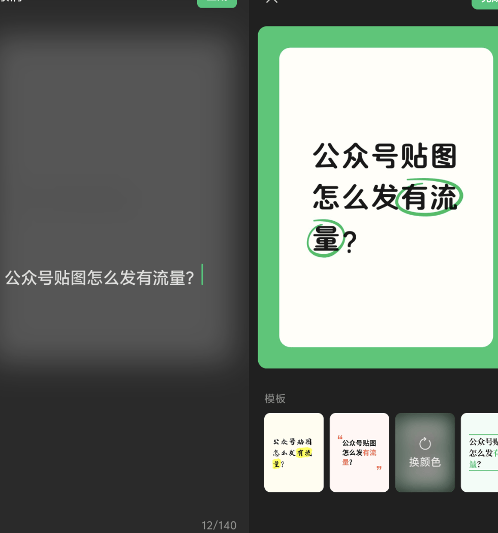文字海报是直接写下你想说的话,点击右上角生成后,系统就会自动给你的内容搭配好看的模板。