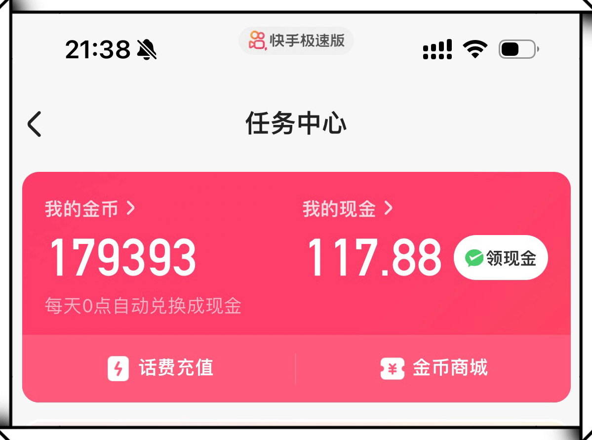 尽管收益较抖音极速版略低,每日可获得10-20万金币,兑换为现金约10-20元,但用户完成这些任务的耗时更短。