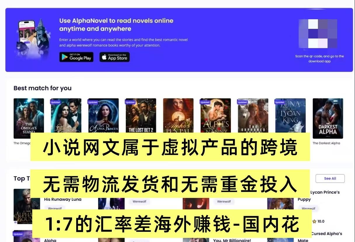 AI海外小说项目,是投入成本极低的跨境项目,无需垫资、无需发货、无需客服售后。