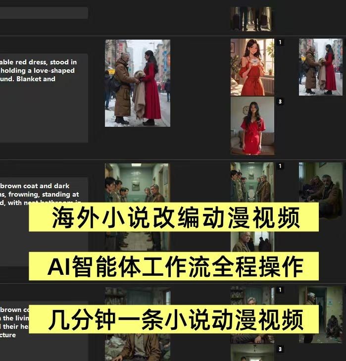 现在小说动漫视频制作,全程都可以通过AI智能体工作流完成,你只需要把小说内容导入AI工作流,几分钟就能生成一条匹配的有声动漫,我们自己无需剪辑、配音,不需要任何人工干预。