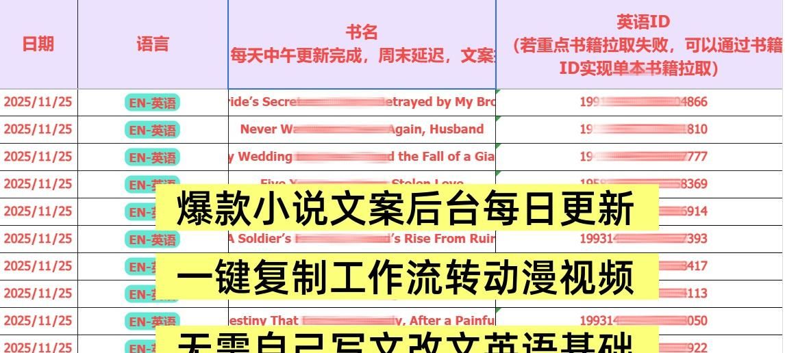 项目玩法:全程通过AI智能体工作流,把海外小说转成动漫视频,赚取小说充值+广告收益。项目优势:不像国内赛道这么卷,也不需要过高的资金设备投入,借助AI工具,一个人在家就能干。项目收益:小说充值: 欧美小说市场,平均25美金/单。小说广告: 海外小说插入广告1-5美金/点击,收益稳定刚需。项目投入:比起动辄投入大几万的电商项目,这个项目更适合像我这种没资金、没人脉、没经验的三无普通人。项目适合:只要你每天能抽出空闲时间,无论是宝妈、大学生、上班族…都能当成长期副业操作。当然,你也可以和我一样,把它当成一份事业,全职居家干。如果你有人脉、懂管理,后期还可以组建工作室团队放大操作。