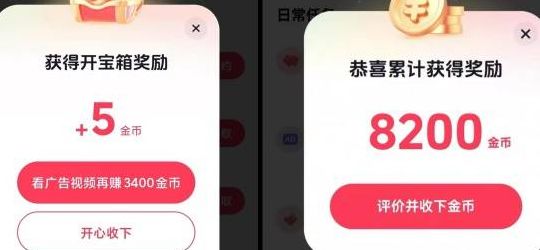 也就是广告引导你做什么,你就配合完成什么:比如遇到直播类广告,看到最后引导你进入直播间,你就进去停留一会儿,点个赞、留个评论就行。不过重点要关注的是游戏类广告,这类广告的收益最高——看完广告后,按照指引完成游戏安装,再试玩两小时。坚持每天完成这类转化任务,你的宝箱广告单条就能拿到3400金币。