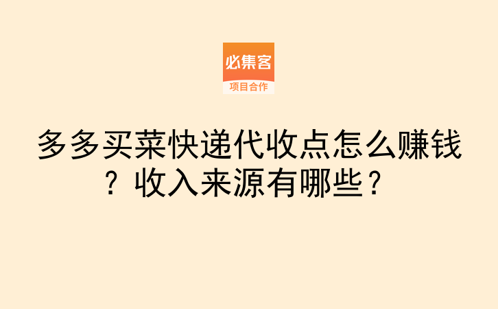 多多买菜快递代收点怎么赚钱?收入来源有哪些?