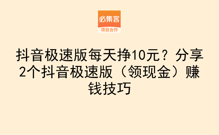 抖音极速版每天挣10元?分享2个抖音极速版(领现金)赚钱技巧
