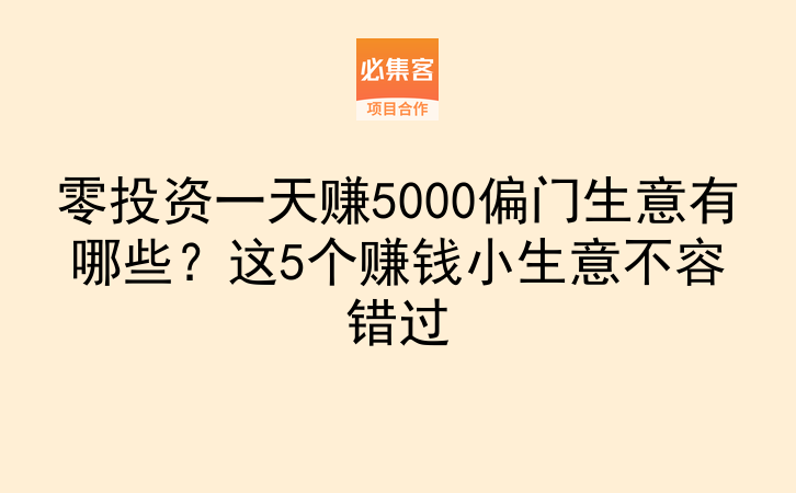 零投资一天赚5000偏门生意有哪些?这5个赚钱小生意不容错过