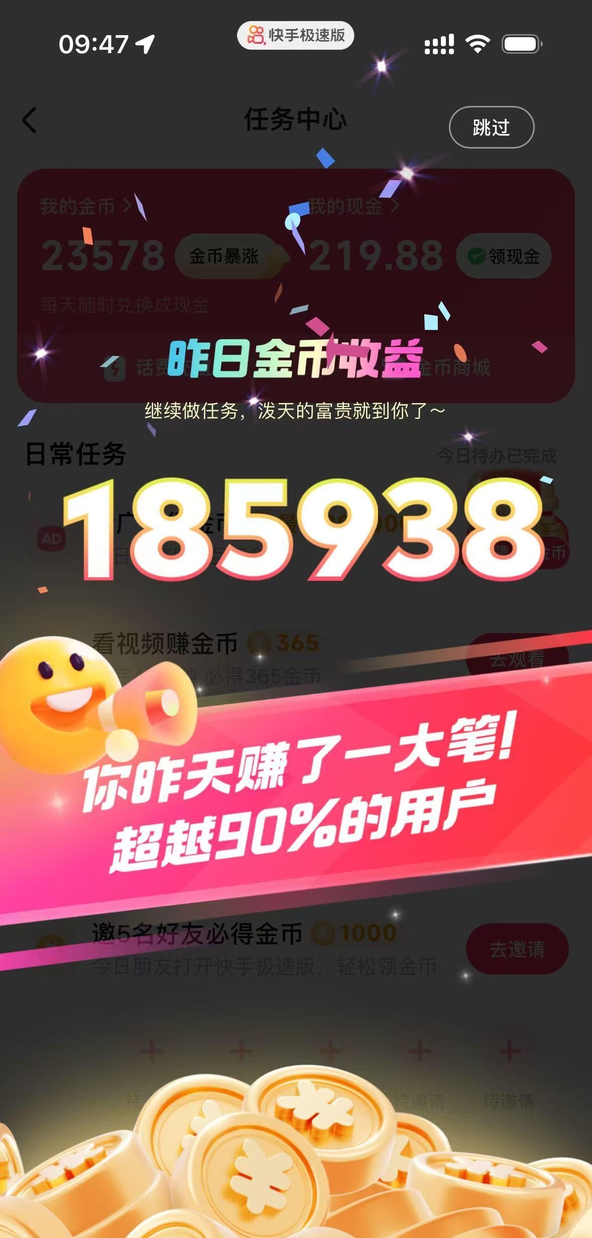 3. 快手极速版:利用碎片时间,轻松积攒金币