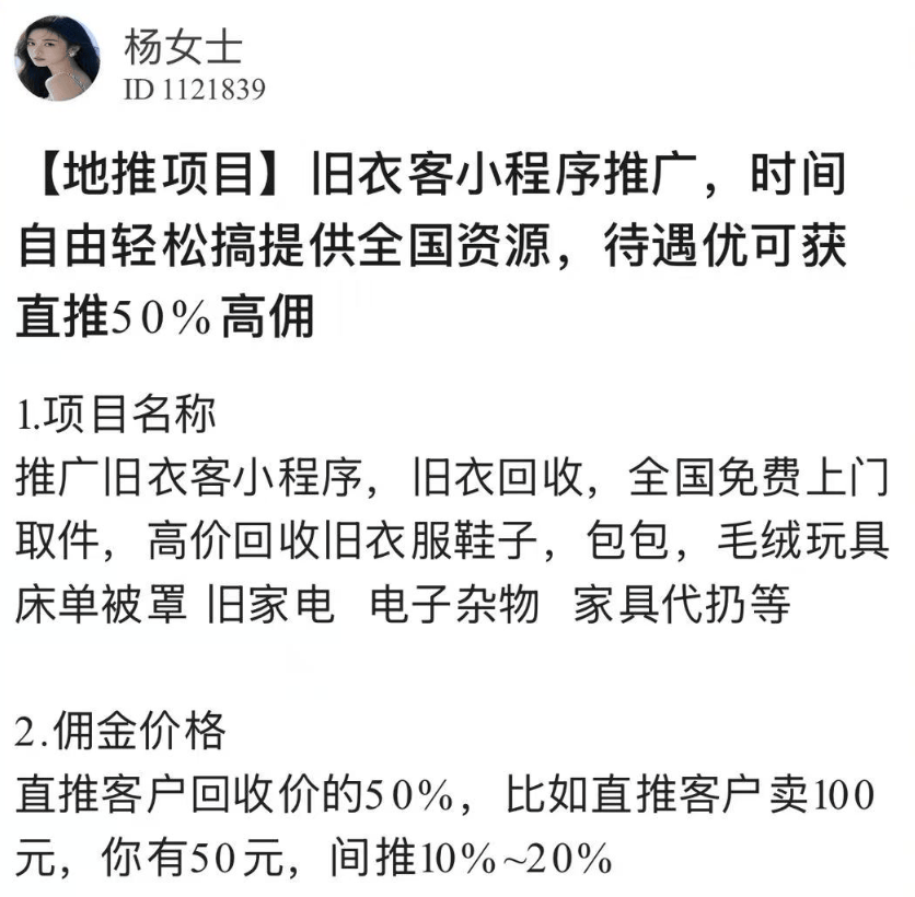 相较于传统骑着三轮车、手持喇叭沿街回收旧衣的方式,今天要介绍的赚钱途径更为简便——旧衣回收小程序推广。它无需放不下面子,且线上线下均可操作,灵活性极强。