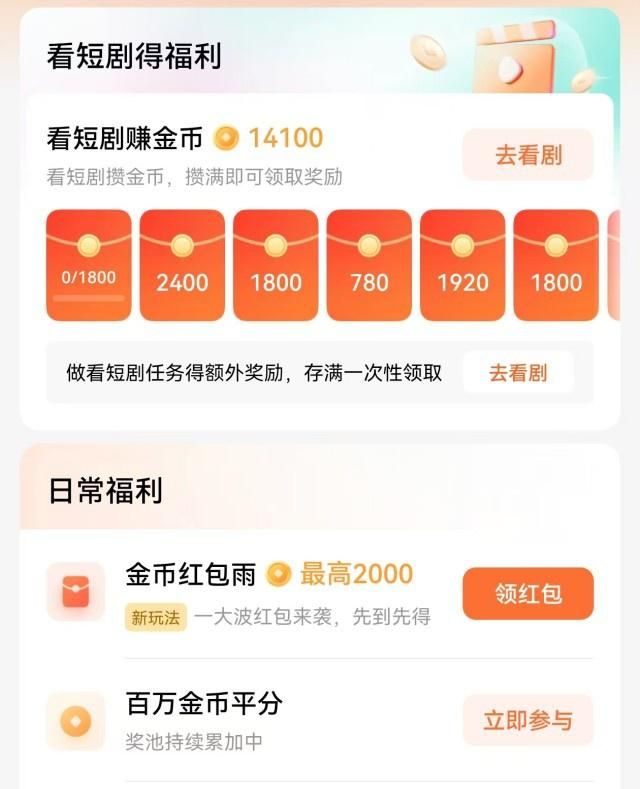 观看短剧时会自动累计金币,此外,任务中心还设有多项金币任务,完成后所得金币可随时兑换为收益。