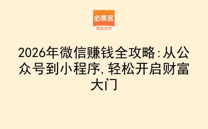 2026年微信赚钱全攻略:从公众号到小程序,轻松开启财富大门