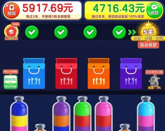 如果你想长期靠这类微信小游戏模式赚零花钱,这种颜色消除类游戏是非常友好的入门起点。