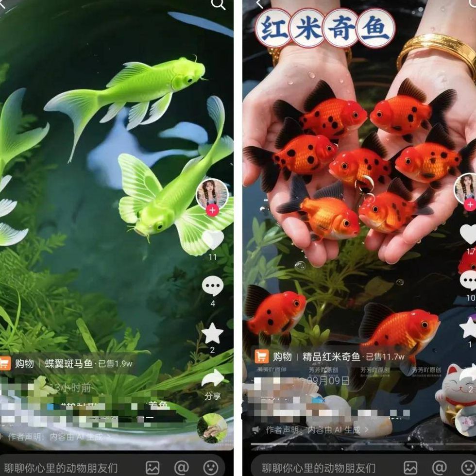 这类账号的核心定位就是观赏鱼销售,所有内容均由AI工具生成。从公开数据来看,已有1.5万人下单购买,这直接印证了该模式的可行性,而实际的销量很可能比这个数字还要更高。