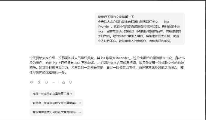 - 降重处理:如果你参考了其他文章的文字,建议手动改写,或者使用AI工具(如豆包)进行初步降重,再人工润色,确保内容原创性。