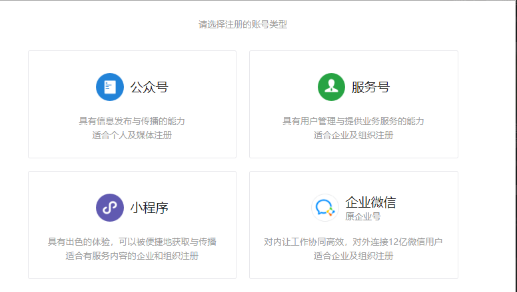 - 访问微信公众平台官网,点击注册。