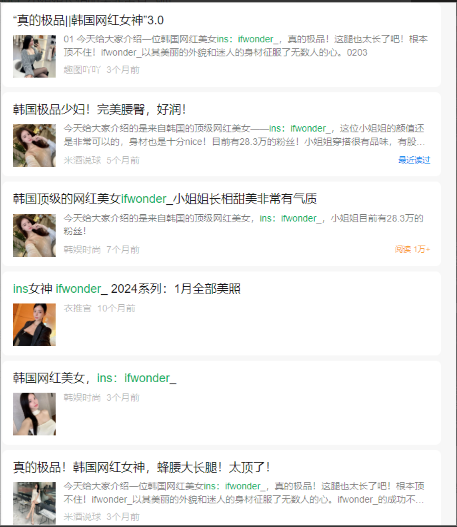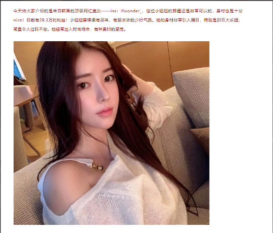 例如,你可以搜索某位模特或网红的名字,整理她们的公开照片,搭配自己的文字描述,制作一篇全新的文章。
