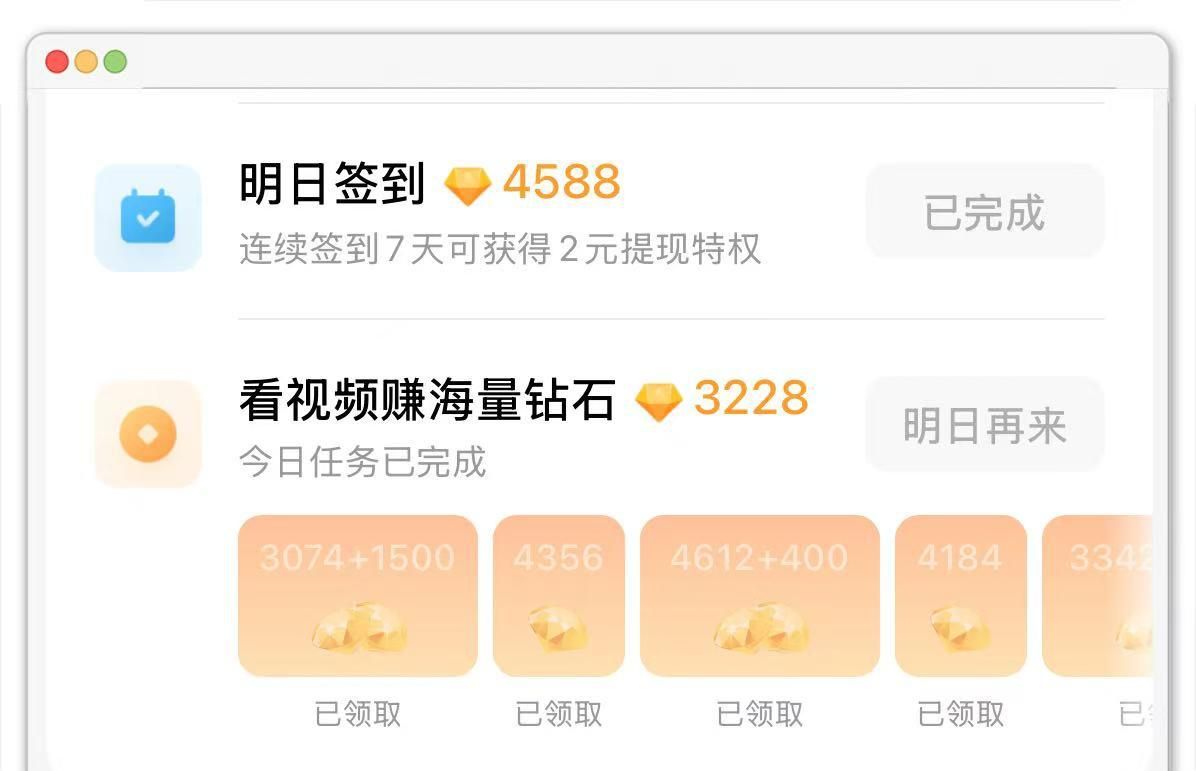 而且红果短剧的钻石任务,相比抖音极速版和快手极速版,操作更简单、更快捷,也更容易完成。