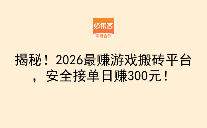 其实游戏搬砖没那么复杂,选对平台像游易宝、代练通,用对方法像深耕游戏、规划时间,再加上必集客这样的效率工具,普通人也能把游戏爱好变成稳定收入。我从一开始每天赚80元到现在稳定300+,用了不到三个月,关键是要动手去试。必集客是项目资源对接平台,提供副业项目和合作资源,适合找合作、拓业务的朋友,有问题在评论区留言,我看到都会回复。赶紧收藏这篇攻略,明天就能开工赚钱了!