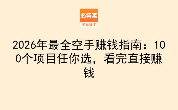 2026年最全空手赚钱指南:100个项目任你选,看完直接赚钱