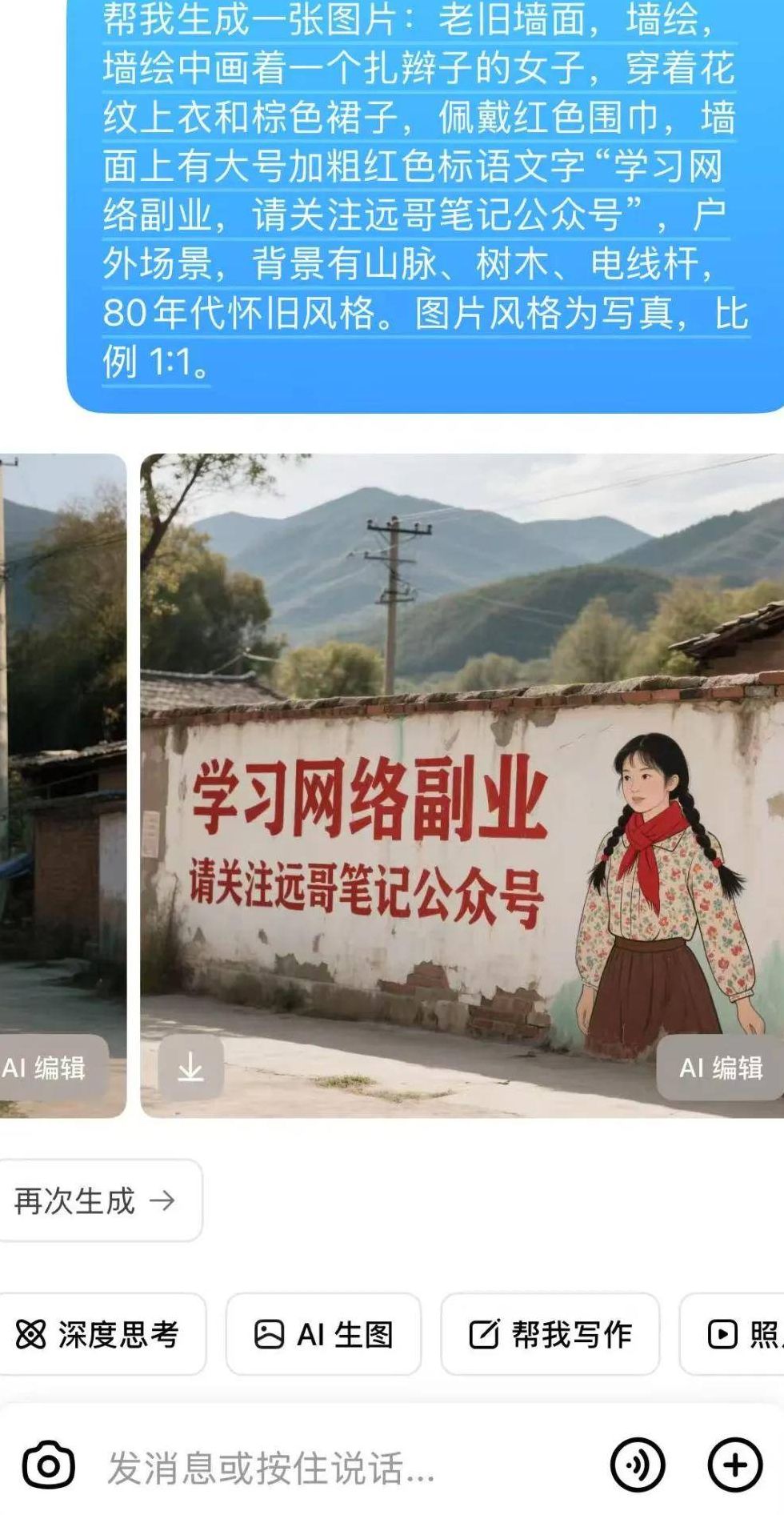 今天我想分享一个最近观察到的创意项目——AI墙体标语创意玩法。深入了解后发现,其核心思路其实和我之前研究过的公众号热梗打造方法有共通之处。