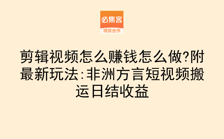 剪辑视频怎么赚钱怎么做?附最新玩法:非洲方言短视频搬运日结收益