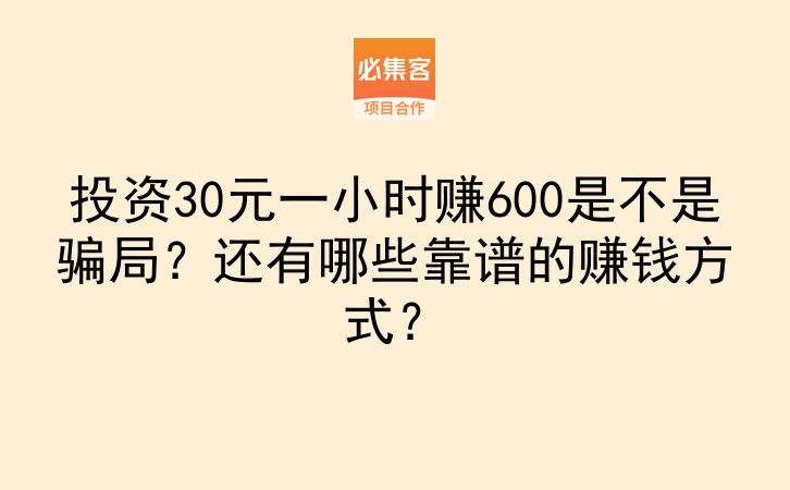 投资30元一小时赚600是不是骗局?还有哪些靠谱的赚钱方式?