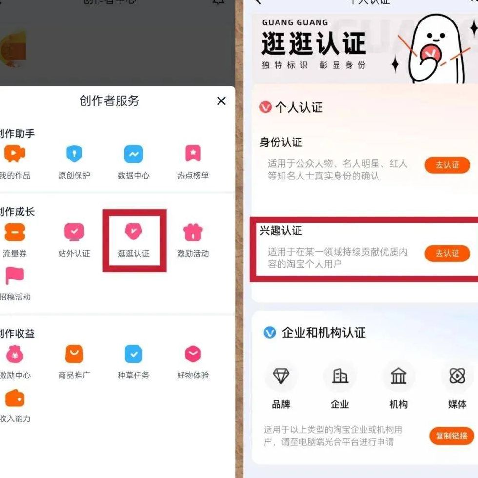 下面说说具体操作方法。首先需要有淘宝账号,这对大家来说基本都具备。一个人可以注册3个账号,但要注意“一机一卡一号”,这样能保障账号安全,避免因账号问题导致前期努力白费。接着开通权限:打开淘宝,依次点击“视频”、左上角三条杠进入创作中心,然后在创作中心找到“全部”、“逛逛认证”、“兴趣认证”完成操作。