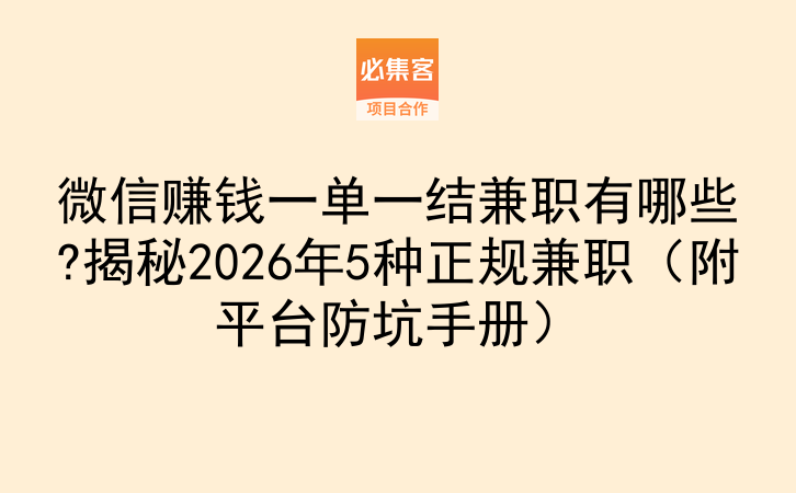 微信赚钱一单一结兼职有哪些?揭秘2026年5种正规兼职(附平台防坑手册)