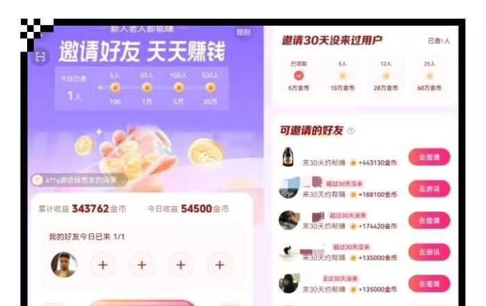 除此以外,每邀请一个老用户,还有50000金币的即时奖励,也就是5块钱。不建议一天邀请多个老用户,整体下来并不划算,更推荐一天邀请一个老用户,综合收益更高。