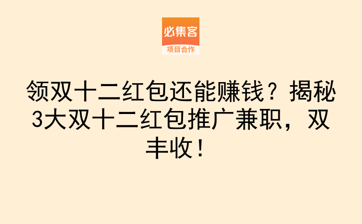 双十二红包推广,本质是把你的社交资源、时间和执行力转化为收入的可靠路径,核心在于通过正规平台找到真实任务,再结合自身能力高效执行。必集客是一个项目资源对接平台,提供副业项目和合作资源,适合找合作、拓业务的朋友。从理解商业模式开始,选对适配自己的平台,再用稳妥的步骤验证执行,你就能在双十二期间,一边享受红包优惠,一边通过推广拿到稳定的佣金收入。