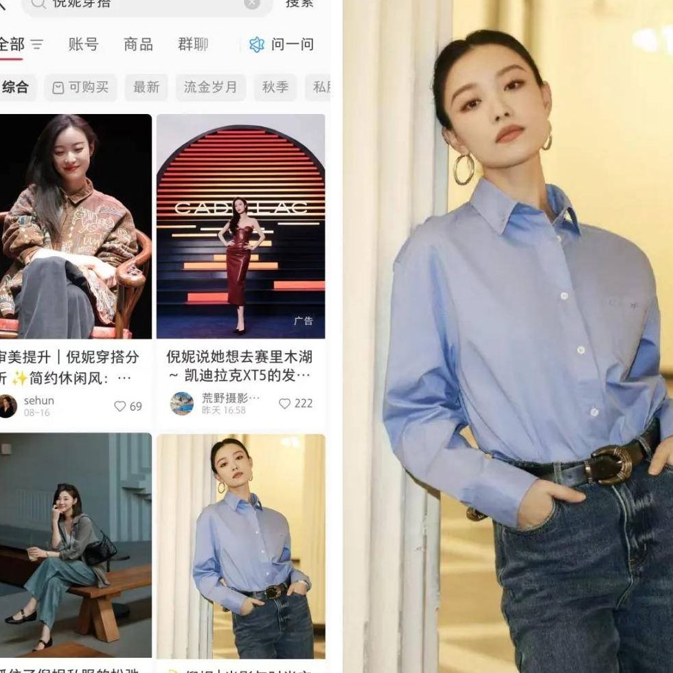 A:总共分三步。第一步是准备图片素材,最简单的方式就是去小红书,在搜索框输入「明星名字+穿搭」,就能找到大量现成的高质量素材图片。