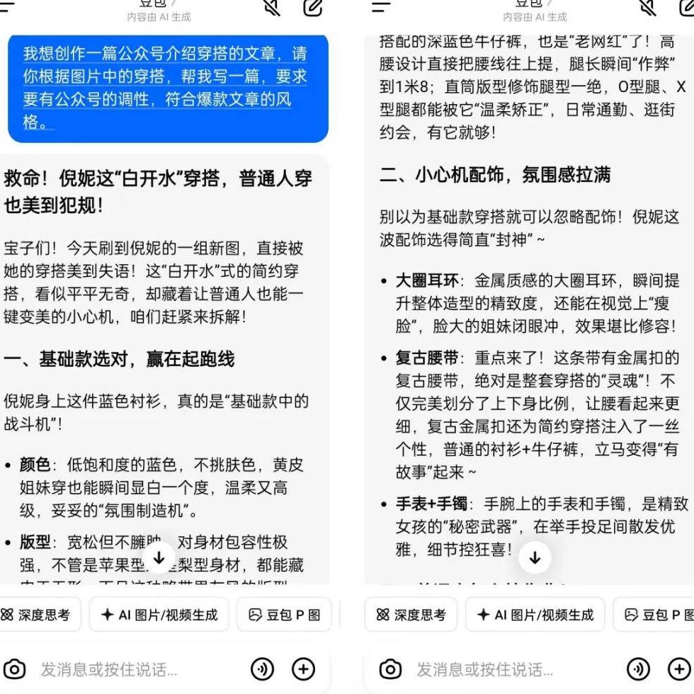 A:不建议直接用。AI生成的内容多少会有些生硬,你只需要自己通读一遍,做简单的修改润色就好。这里有个很实用的小技巧:用手机的语音输入功能,把文章口语化复述一遍修改,改出来的内容更自然。最后把改好的文字和找好的图片组合排版,就可以发布了。