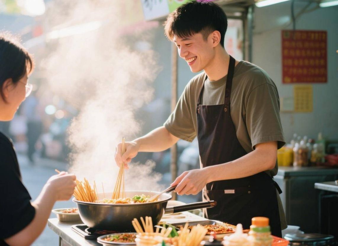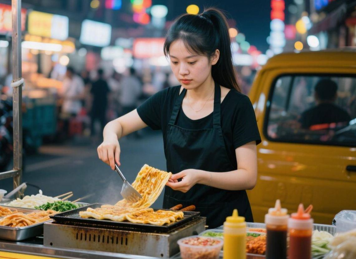 她总说摊子小没关系,关键是得摸准地段和品类:比如中学门口卖手抓饼、夜市巷子里卖烤冷面、商场负一层卖炸串,盯着年轻人的刚需来做,肯定错不了。