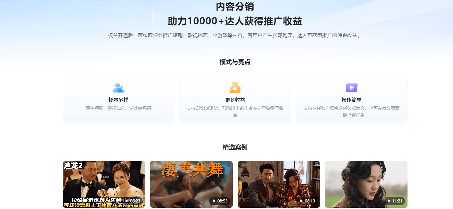 简单来说,就是帮各类短剧触达更多用户,提升它们的曝光度和知名度,吸引更多人去观看完整剧集。