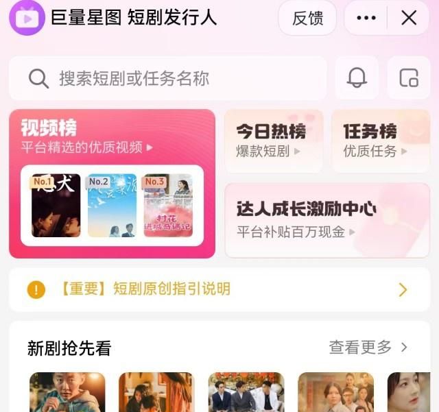 巨量星图是抖音官方的创作变现平台,里面专门设有短剧推广板块,聚合了抖音平台上的热门短剧推广任务。如果你打算在抖音做短剧CPS推广,巨量星图绝对是首选。