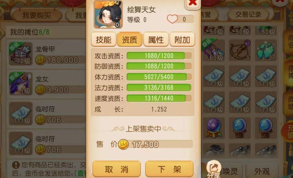 洗出的五技能绘舞天女能卖到10万金币左右,你要是只卖1万,那亏得可就太离谱了!