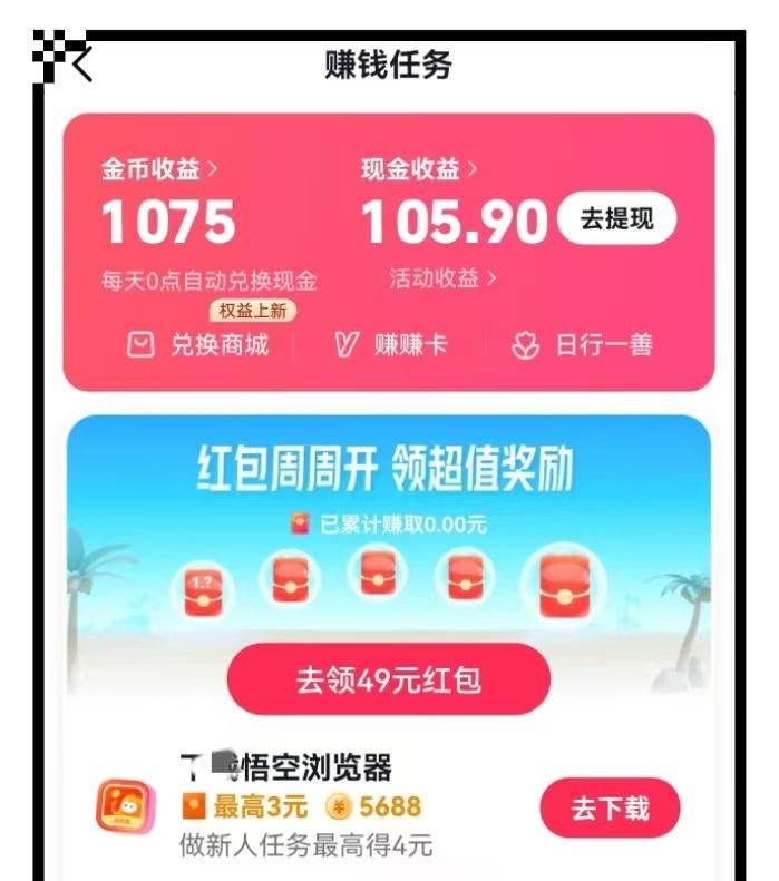 光看名字就能知道,UC浏览器极速版是基于原版UC浏览器打造的轻量化版本。它同样设有任务中心,用户通过追更小说、搜索资讯、刷短视频等任务就能赚取元宝,进而兑换为实际收益。