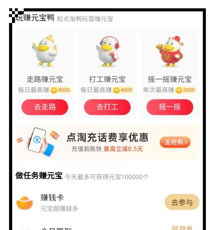 用户在专属任务页面完成看直播、购物、浏览商品等任务,就能获得对应数量的元宝,而这些元宝可以直接兑换为现金收益。