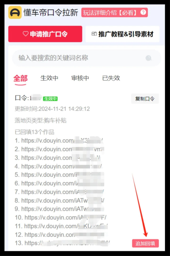 登录拉新平台,搜索“懂车帝拉新”项目,点击申请推广。按页面要求填写信息,提交后等待审核。审核通过后,你将获得一个专属口令码,用于后续推广。申请后,测试口令码是否可正常跳转,避免无效推广。