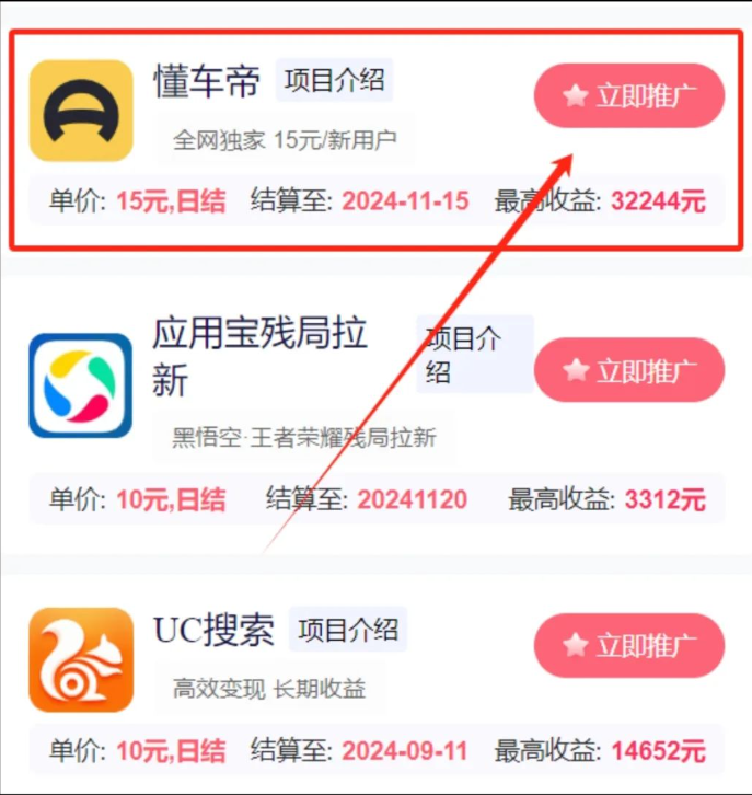 懂车帝拉新项目正处于推广高峰期,收益较高。尽早参与可抢占市场红利,获得更多回报。