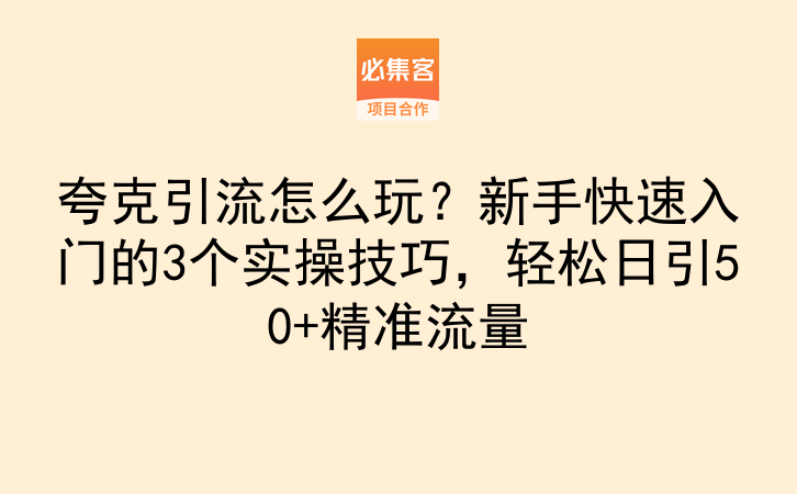 做夸克推广,本质就是找对合规的接单渠道,产出对用户有用的内容,再通过多渠道覆盖更多目标用户,整个路径没有太多玄学,只要把每个基础环节做到位,拿到稳定的精准流量并不难。如果你正在找靠谱的推广任务,希望对接更多经过筛选的行业资源,也可以了解一下必集客,必集客是一个项目资源对接平台,提供副业项目和合作资源,适合找合作、拓业务的朋友。对新人来说,选对适合自己的起步方式,比盲目埋头努力更重要,夸克推广本身门槛不高,只要找对方法,普通人也能从中分到流量红利。