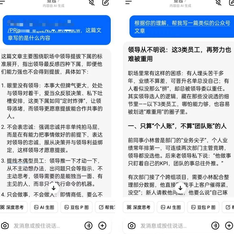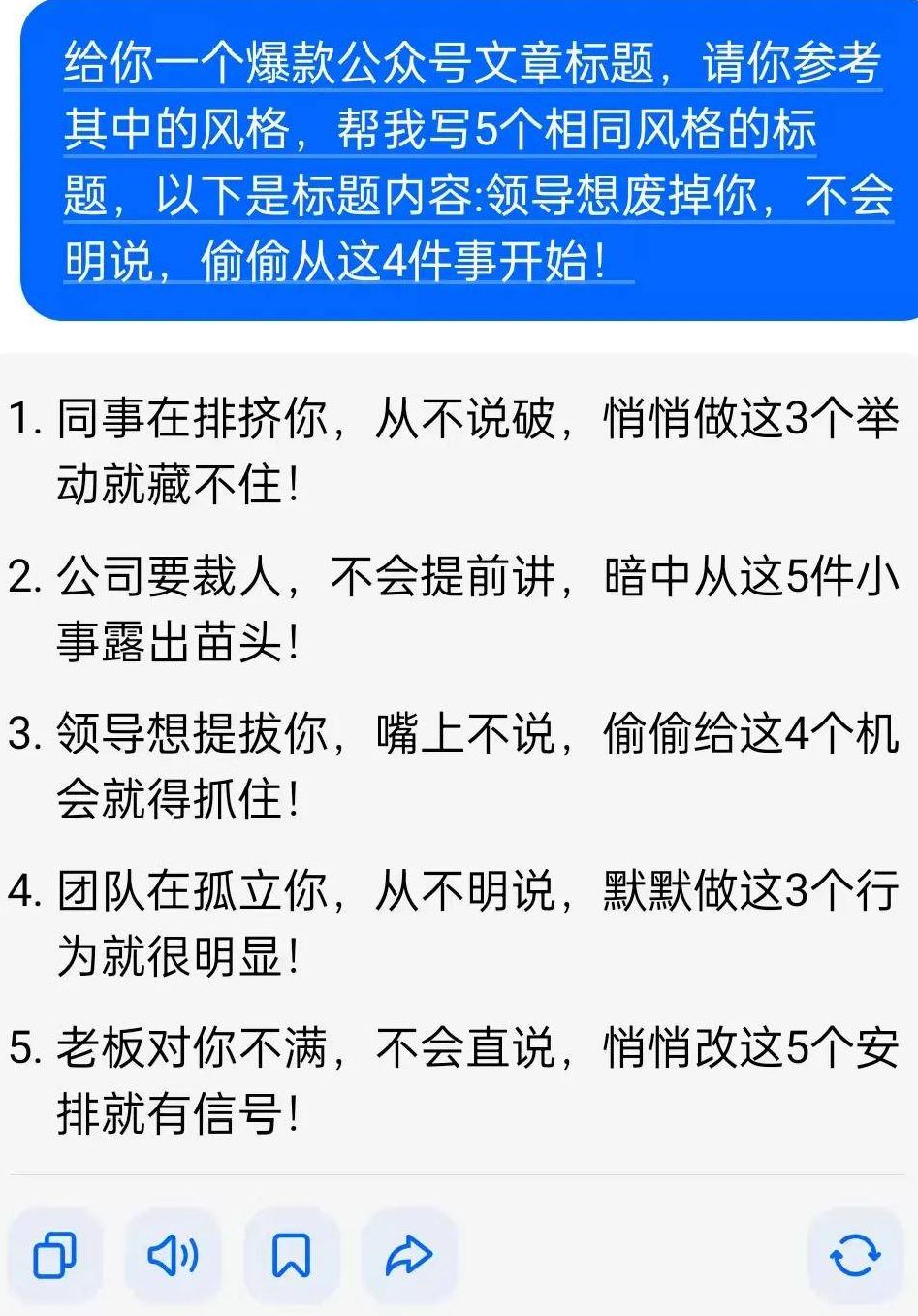 关于标题,常见做法是选取爆款标题让AI模仿。但需要注意的是,若不理解爆款标题背后的用户心理,单纯模仿出的标题很可能只是空壳,甚至沦为毫无吸引力的“标题党”,长此以往会损害账号的信任度。建议多分析、少照搬。