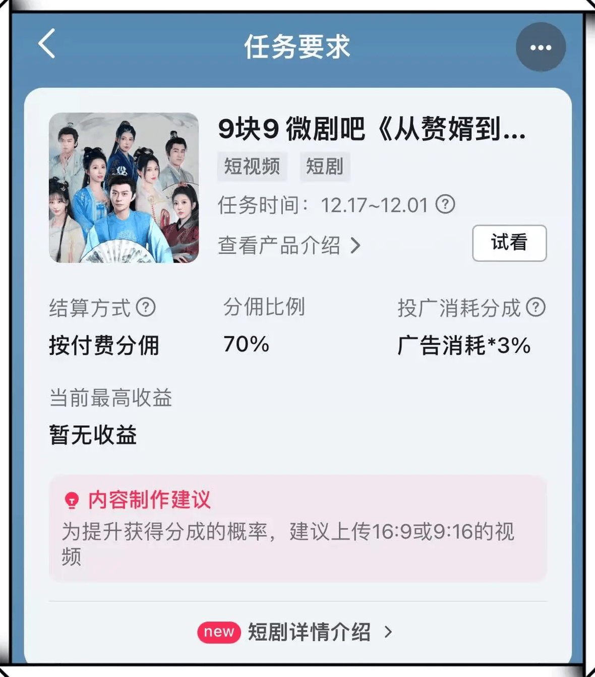 上文我们已经提到了短视频平台的不少红利赚钱项目,其实除了短剧推广和小说推文,你还可以尝试中视频计划这个项目。
