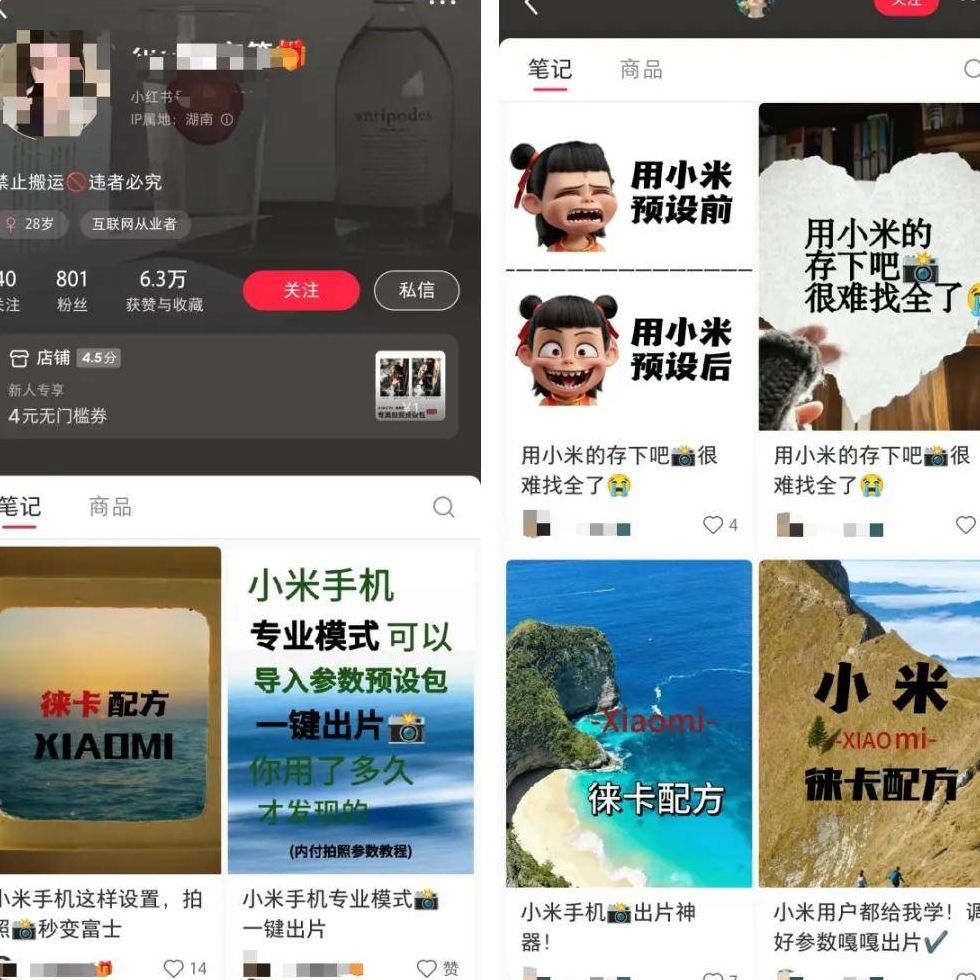 今天拆解一个项目:通过小红书渠道销售小米手机的摄影参数预设。这套玩法本质上是虚拟资源店铺运营的一种思路。