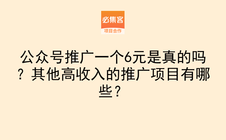 公众号推广一个6元是真的吗?其他高收入的推广项目有哪些?